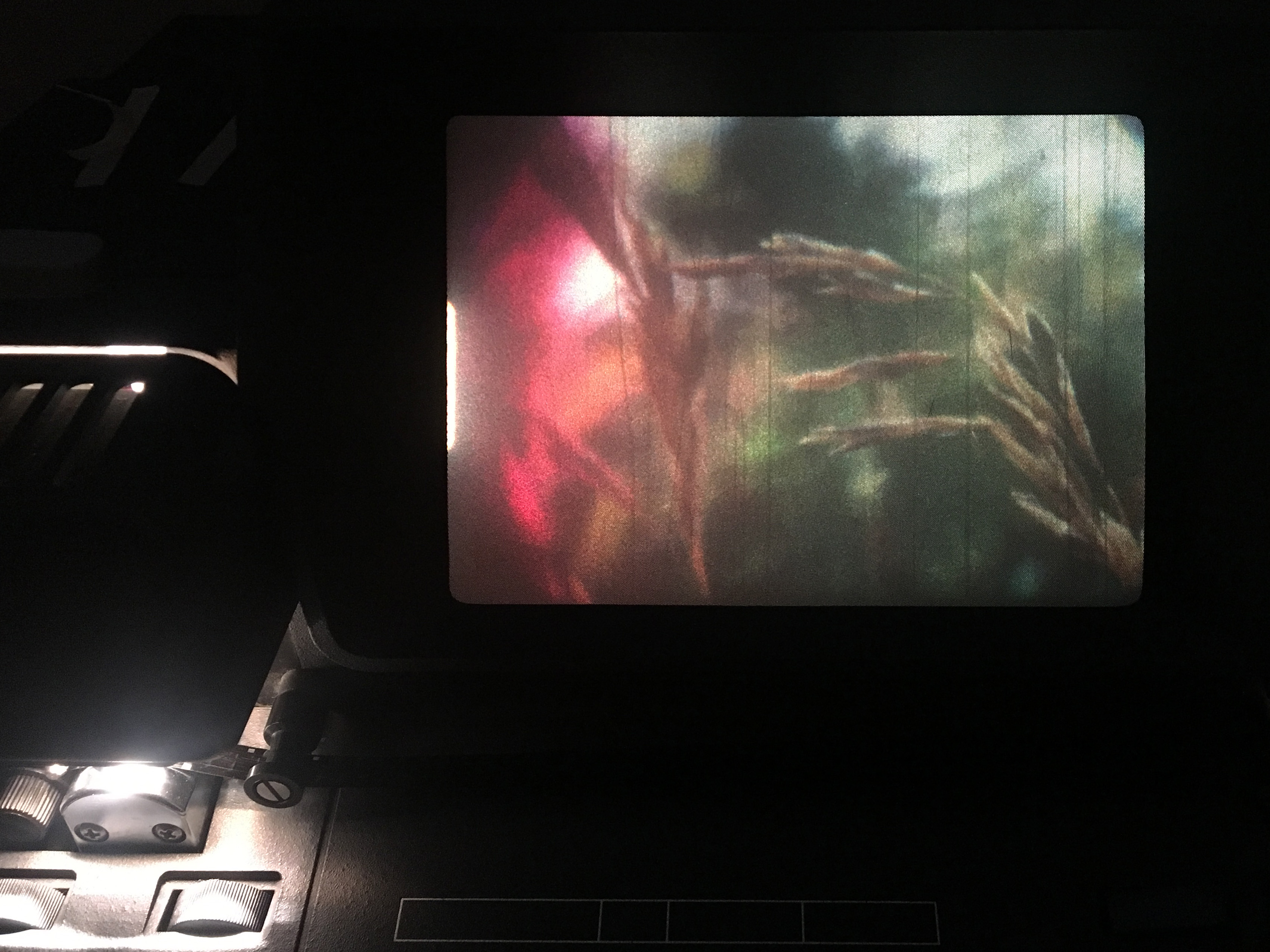 A 16mm film loop of a waterfall plays continuously on a custom-modified 16mm film projector that uses a live video feed of candles focused with hand-held pieces of glass as the light source that illuminates the film. Matthieu has presented this performance only once before in Ottawa in 2017 at General Assembly. The Waterfall was last presented in August 2022 at the San Francisco Cinematheque’s Crossroads Festival.