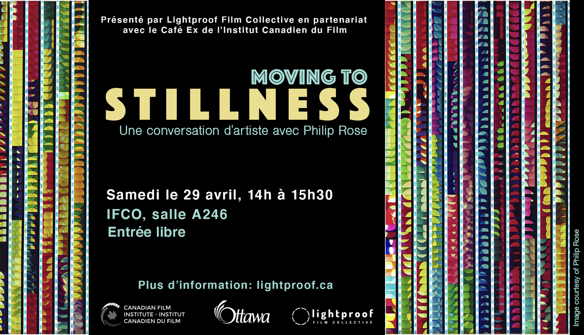 À la suite de sa présentation au Café Ex le 26 avril, Philip Rose partagera d'autres aspects de sa longue pratique en tant qu'artiste médiatique/photographe. L'un de ses caissons lumineux à champs de couleurs, créé à la fin des années 90, fera sera exposé pendant la rencontre.